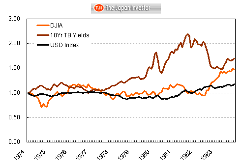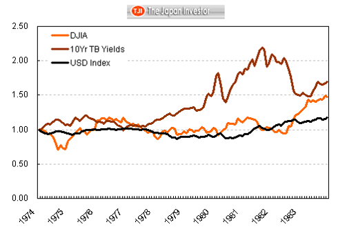 In the decade after the 1973 oil shock, bond yields surged to around 1982 because of the virulent inflation unleashed by the exogenous shock to prices throughout the global economy because of the sudden interruption of crude oil supplies. Stock prices, particularly in real, inflation-adjusted terms, saw one of the worst bear markets in history, but revived and staged a strong rally as soon as bond yields began falling. On the other hand, gold prices were surging during the peak of inflationary pressures during this period, again by about 500%.